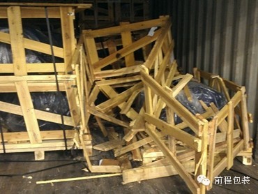 某公司449T-2超高效发电机,产品重量约为1300kg,产品外径尺寸为1455X915X735mm。原包装供应商为其提供的包装方案是采用普通实木花格箱,每两只花格箱堆码在一只大托盘上,使用打包带捆扎,再装集装箱。国外客户收到货物后发现,部分花格箱损毁,导致电机破损(如图一所示),造成巨大的经济损失。